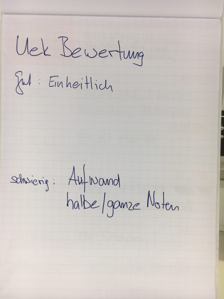 • Noten: Optimierungsbedarf bezüglich Vorgaben und Anzahl Noten; Auseinandersetzung mit Zehntelnoten.
